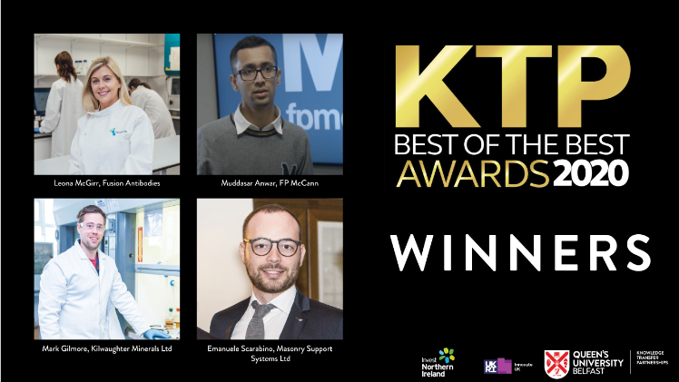 The Knowledge Transfer Team (KTP) team at Queen’s are absolutely delighted to have scooped up four awards across two categories (‘Engineering Excellence’ and ‘Future Innovator’) at the KTP Best of the Best Awards 2020.