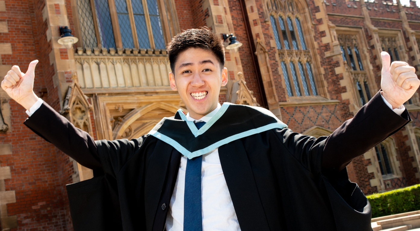 Walter Wong has been a stand-out student since receiving an International Student Scholarship to study Pharmacy at Queen’s University Belfast and will today (Monday 1 July) graduate with a Master of Pharmacy.