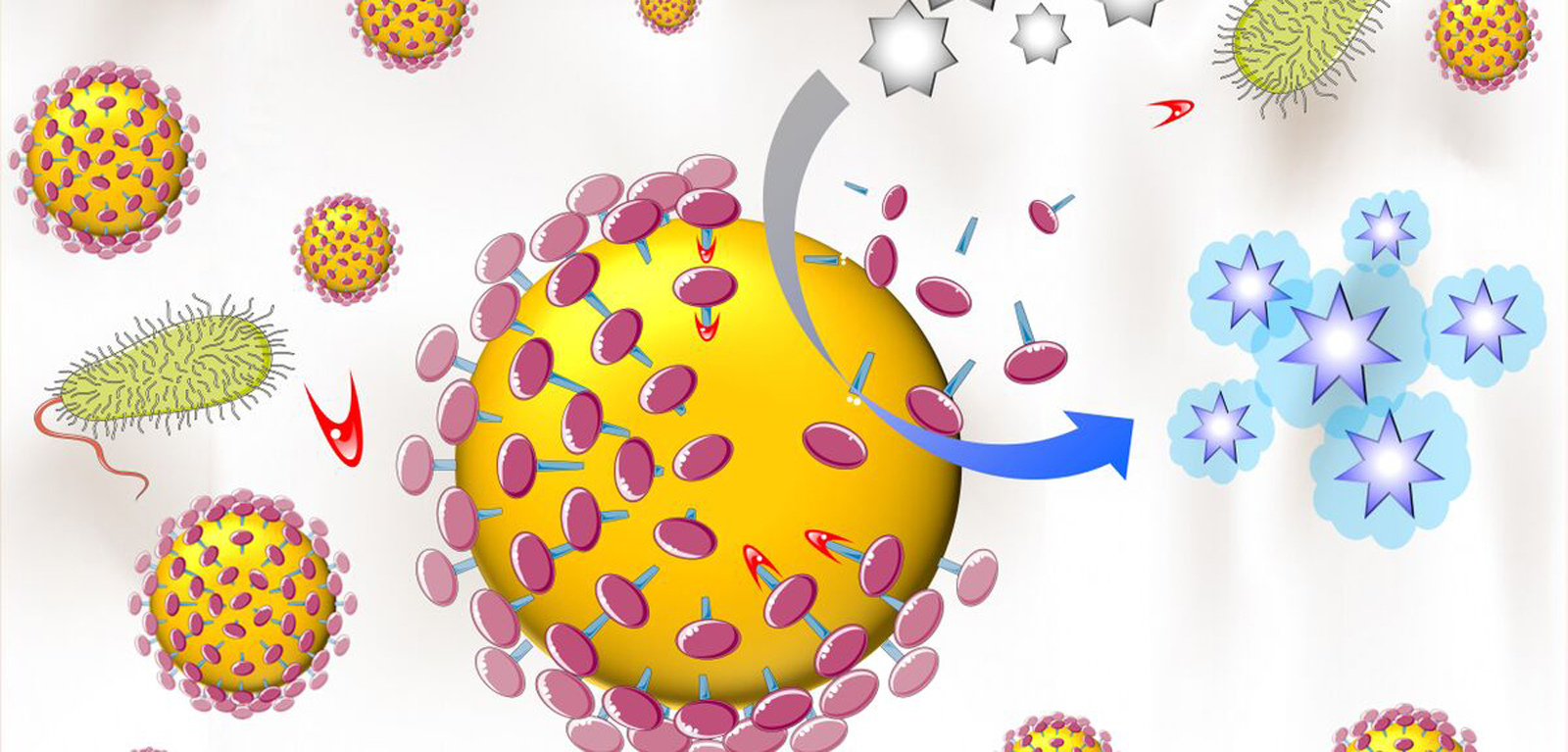 The gold-nanoparticle based nanosensor devised by Queen’s researchers indicates when proteases are present through a visible colour-change reaction. Gold nanoparticles are well known for their capability in speeding up the oxidization of a chemical called tetramethylbenzidine (TMB), visible through a vivid blue-colour formation.