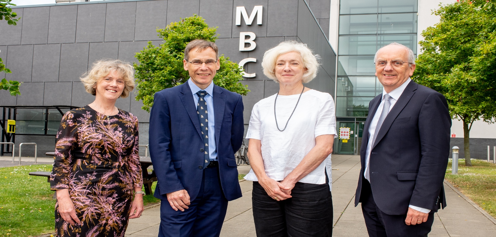 Pictured (L-R): Professor Karen Morrison, Queen's Dean of Education, Faculty of Medicine Health and Life Sciences; The Royal College of Surgeons of England (RCS Eng) Vice President, Mr Tim Mitchell; Council Member, Miss Susan Hill; and Professor Pascal McKeown, Queen's Dean and Head of School of Medicine, Dentistry and Biomedical Sciences
