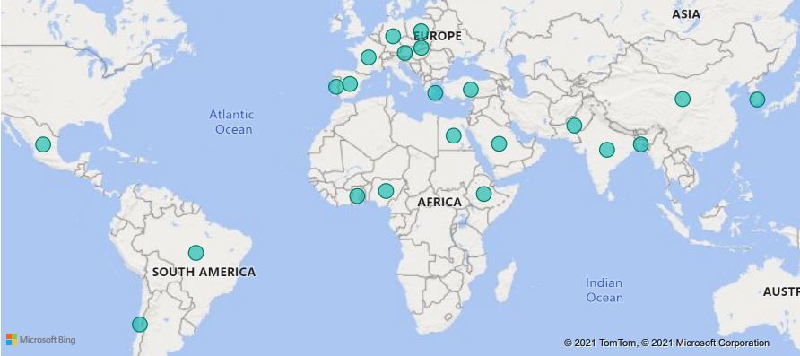 The below map shows the reach of our international PGR community currently, but new students and nationalities are joining all the time.