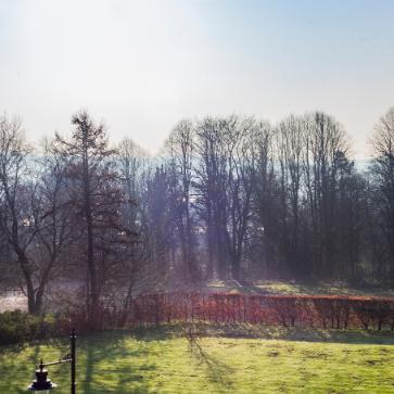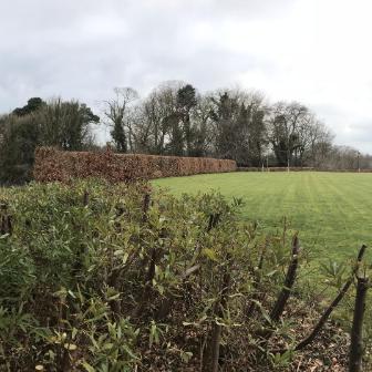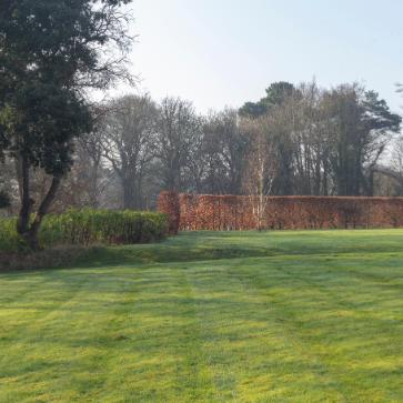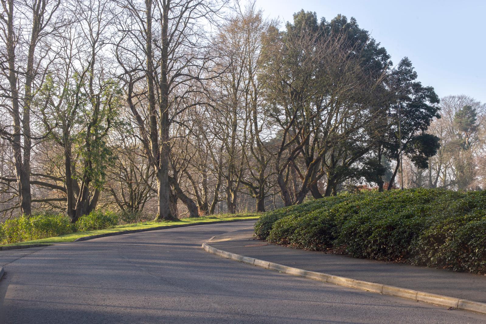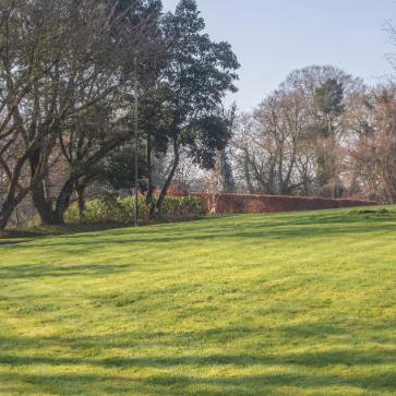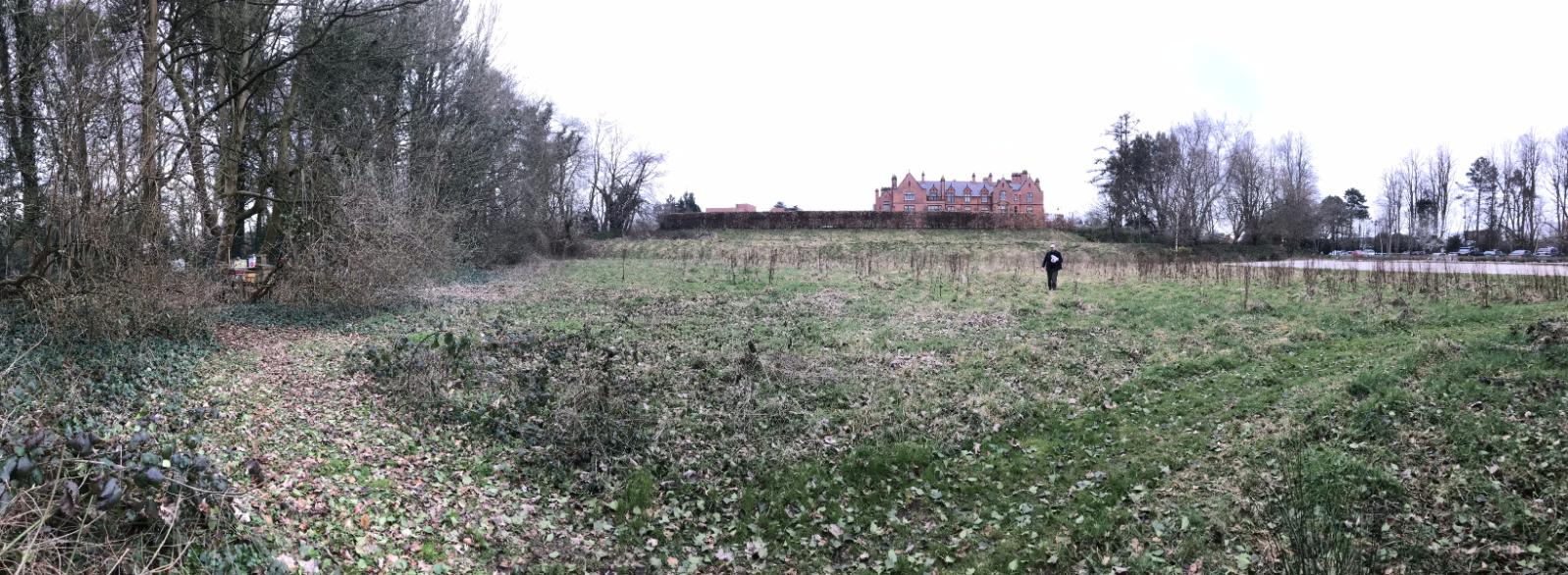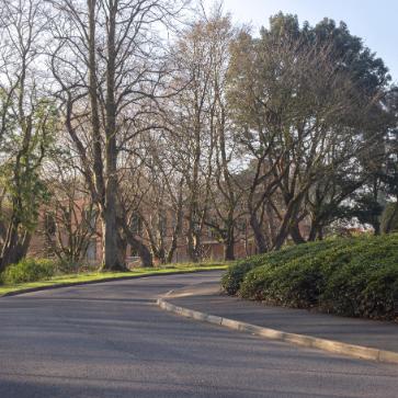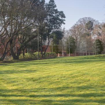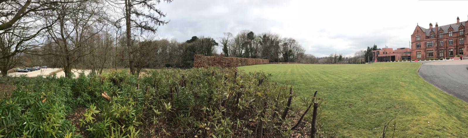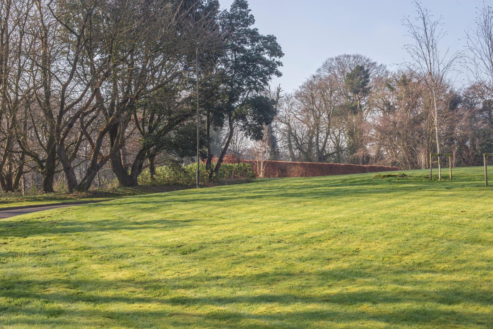 The site is located due south of the main Riddel Hall building on a lower lying section of the grounds. The site is well screened from Riddel Hall by an existing hedgerow that runs along the top of the bank. There is a c4.8m drop between the site and the upper-level lawn area. The site is bounded to the south and west by dense woodland and includes existing car parking facilities to the west which provide access to the site. All trees on the site are protected and the surrounding woodland area forms part of the Stranmillis College Historic Park, Garden and Demesne.