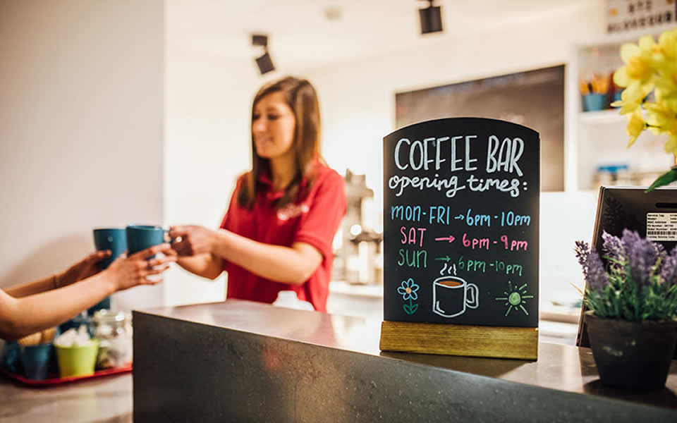 The social lounge has pool tables, games consoles, board games and a free coffee bar. A great space to chill out, grab a coffee and make friends.