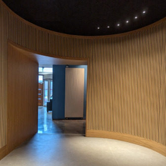 The project included the refurbishment and reconfiguration of ground and first floor space within the Sonic Arts building. A new Galley space was created on the ground floor, while the first floor was reconfigured to provide dedicated Postgraduate space and Tutorial Room, new academic offices, a state-of-the-art flexible Performance space, and associated ancillary accommodation. The Performance space will also be used to deliver Teaching. Refurbishment works included new mechanical and electrical installations to suit the new spaces together with new floor, wall and ceiling finishes, and related furniture to complement the spaces provided.