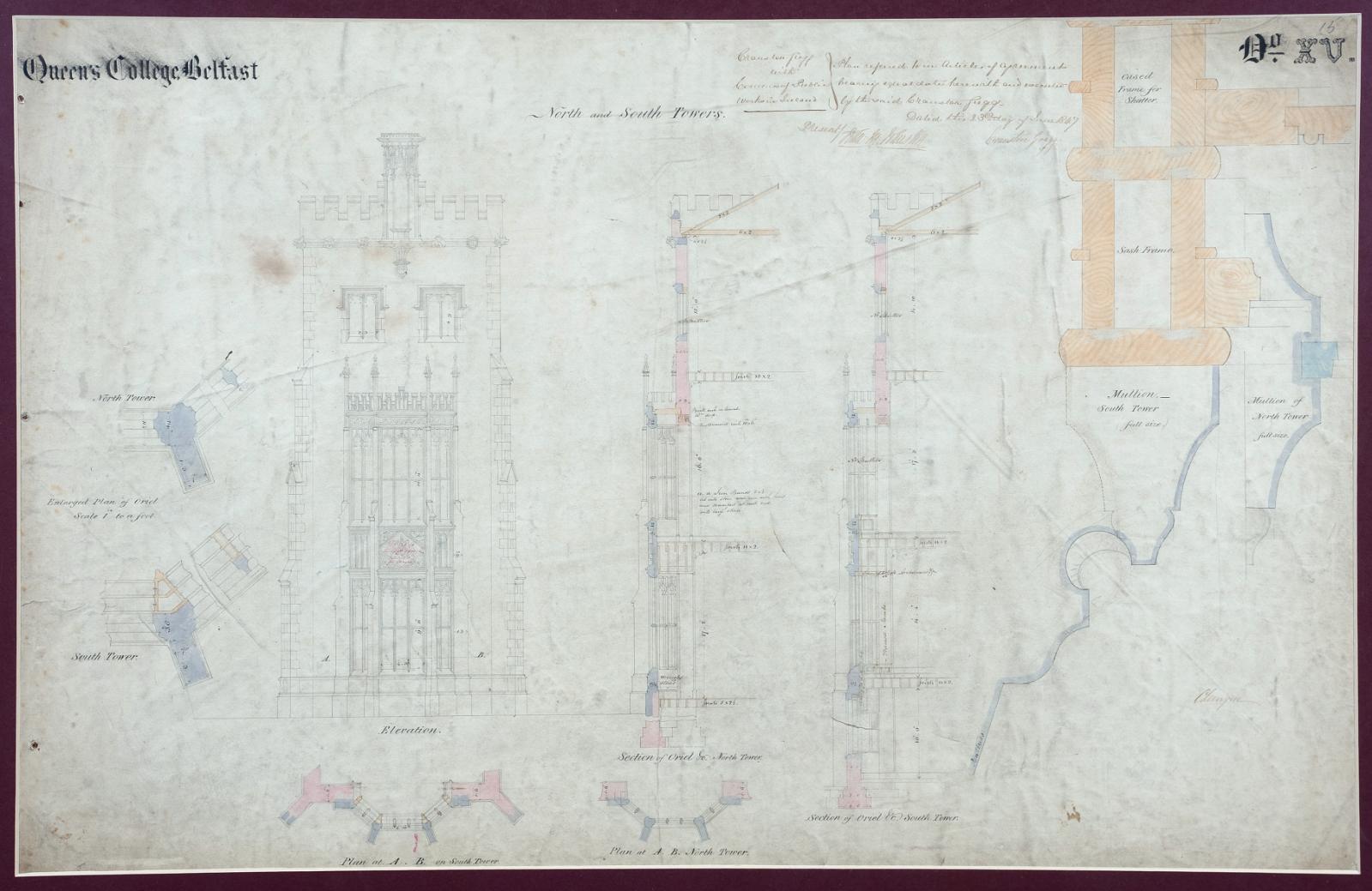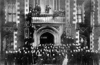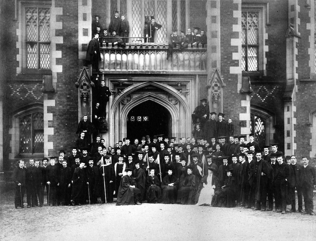 Queen’s College Belfast was established, along with colleges at Cork and Galway, under the Irish Colleges Act 1845. The architect Charles Lanyon was appointed the architect for the college and, after much debate, the site beside the Botanic Gardens was selected for the new building. The foundation stone was laid on 30th December 1845 and the building, now known as the Lanyon Building, was constructed between 1846 and 1849. It sits at the heart of the University campus and is the focal point of the Queen’s Conservation Area, the first one to be designated in Belfast.