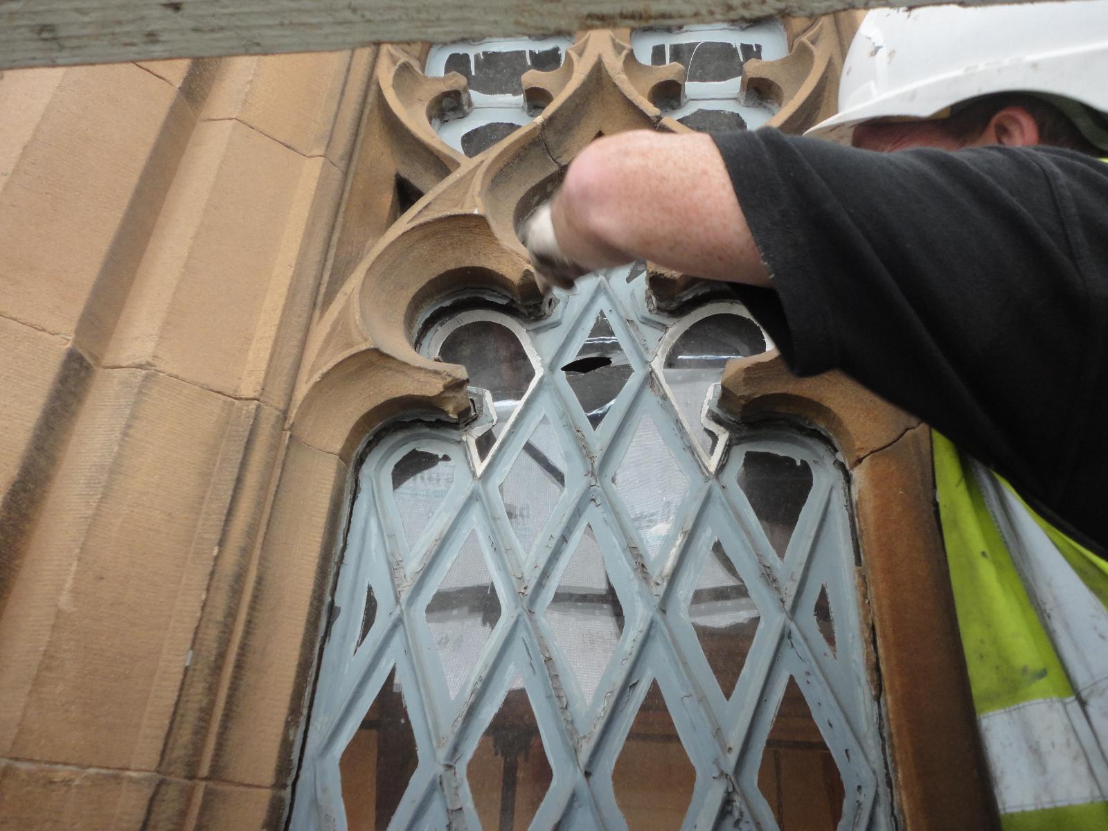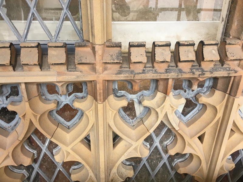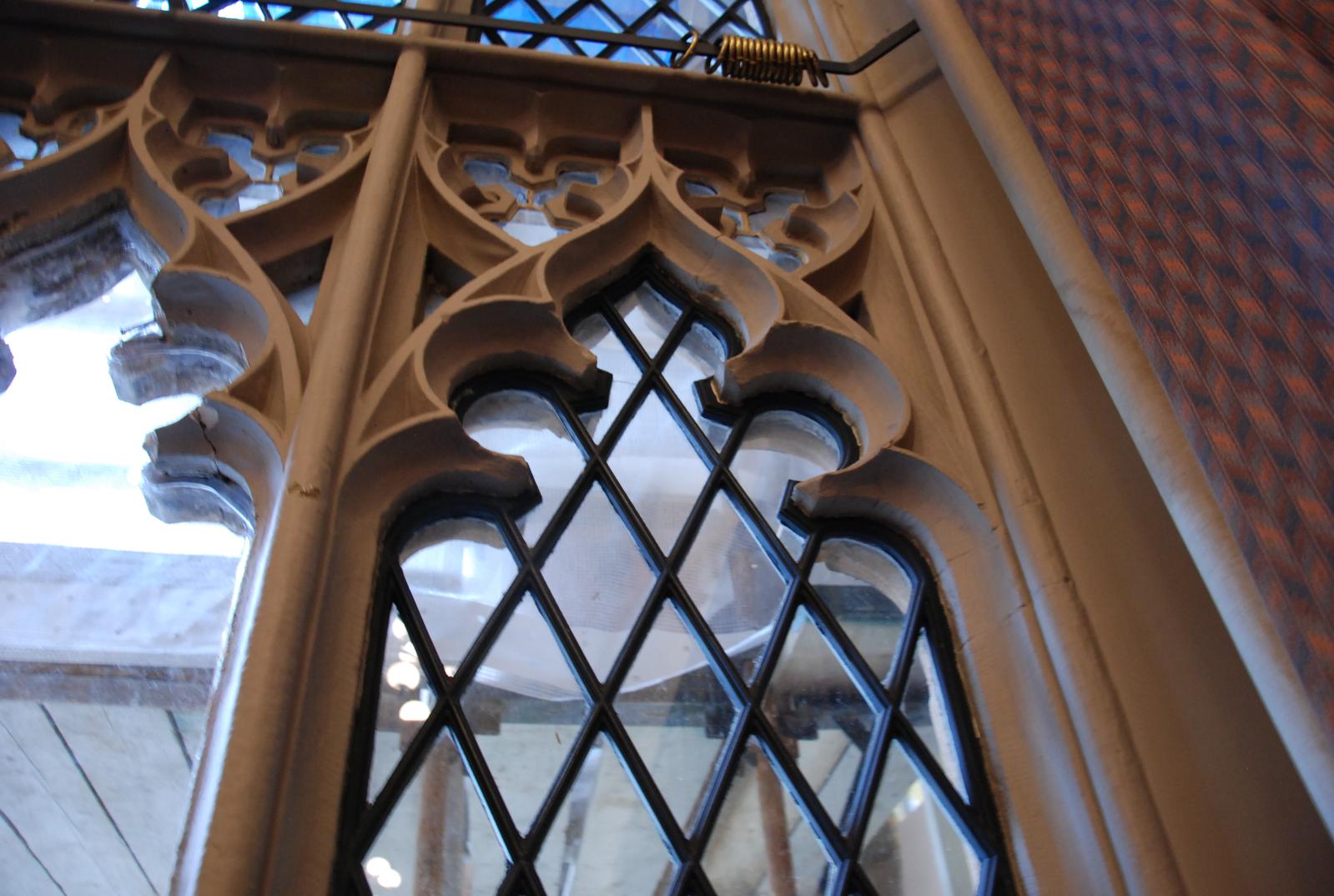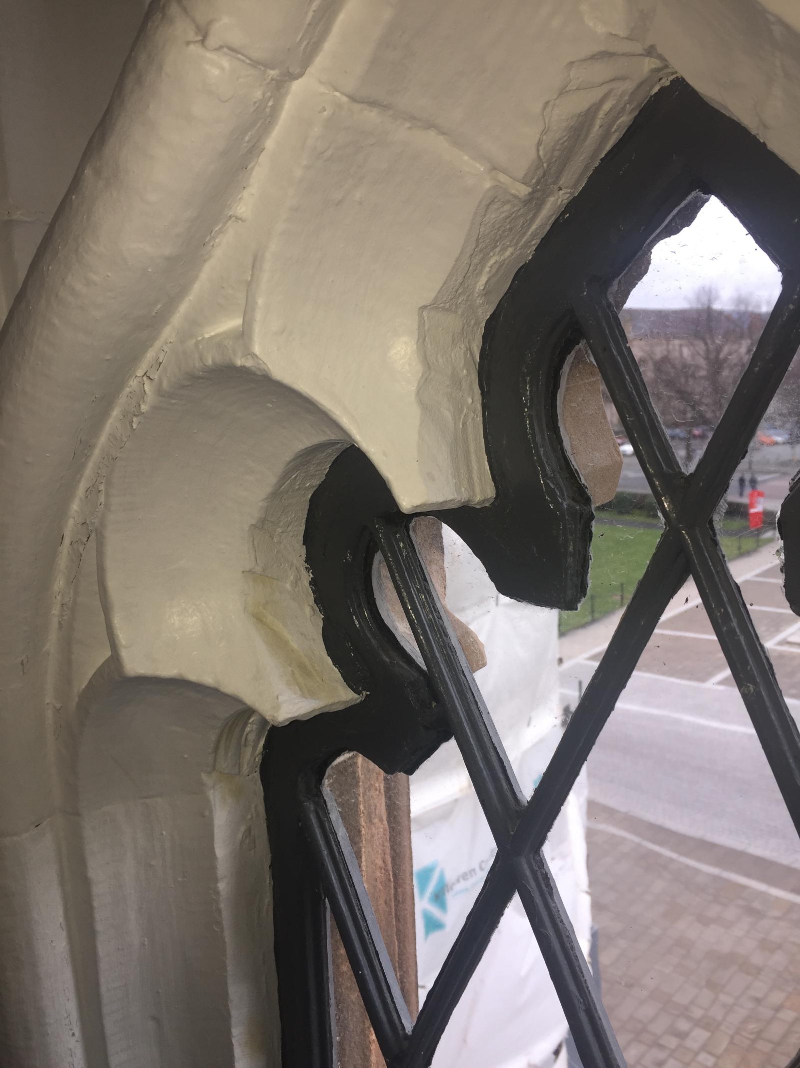 In order to achieve this, rather than simply replace the 170 year-old originals, it was decided to restore as many windows as possible. However, problems emerged while attempting to recreate the trefoil heads of the lattice windows, which in some cases had almost entirely eroded away (although they all appear uniform, each window is unique and not one of the lattice panes would fit another window).