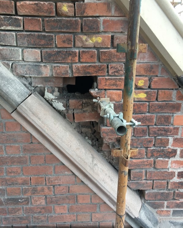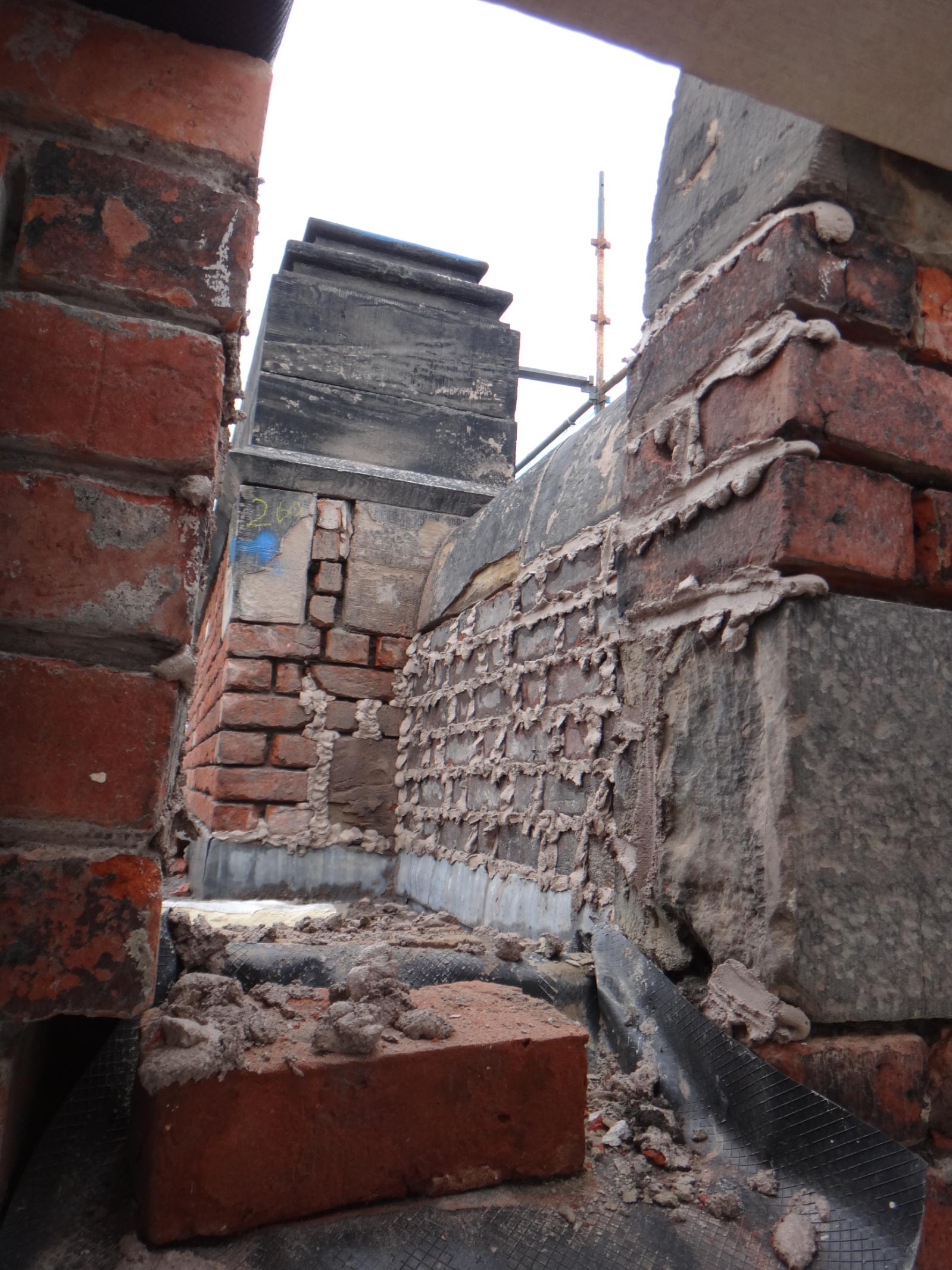 - Replacement of brickwork and repointing to halt deterioration