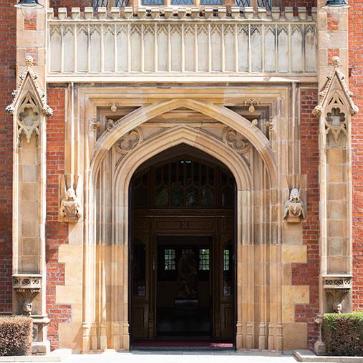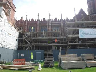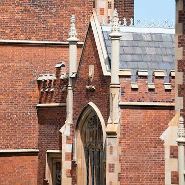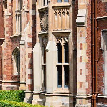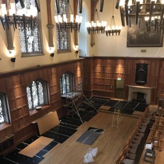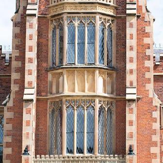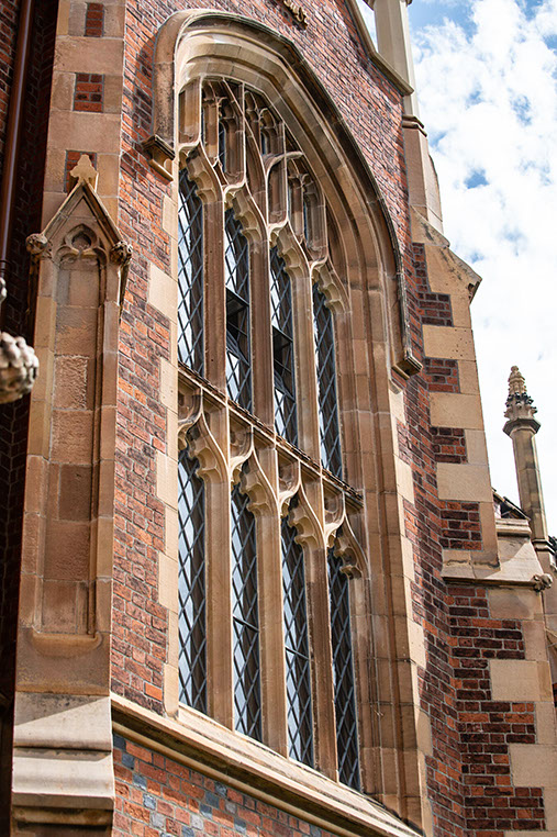 The new stonework is carefully integrated into the existing historic fabric and the new brickwork, selected to match the older bricks, has been inserted only where necessary. Rainwater goods, so often the Cinderellas of any renovation work, have been upgraded to cope with climatic conditions and ensure the future protection of the building from water ingress. The windows are, however, perhaps the greatest achievement in what was from the outset a project carried out to the highest conservation standards. Windows have been reinstated to their original character with disfiguring overpainting removed, and with some replacements where necessary, faithful to the original design and requiring innovative restoration techniques. The opportunity was also taken to refurbish the interior of the building with refreshed painting schemes in the Great Hall and new carpets in the Canada and Senate Rooms and Council Chamber.