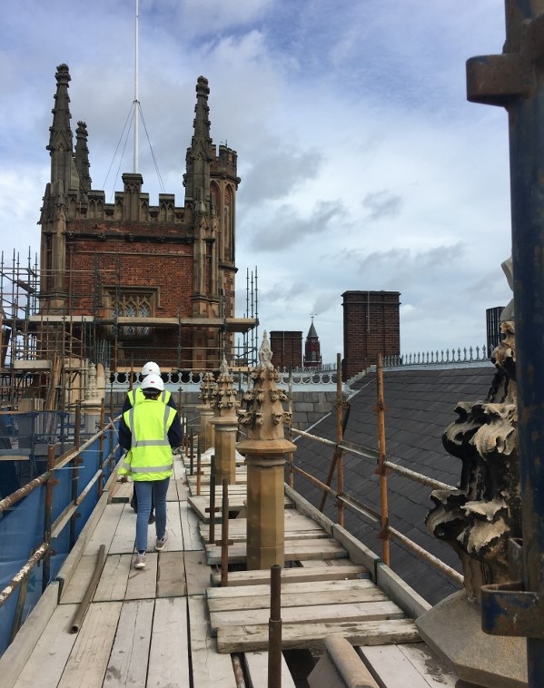 Undertaken between 2017 and 2019, the conservation of the Lanyon's façade marked the first major comprehensive work on the original building and involved the refurbishment and replacement of stone, brickwork, windows, leadwork, and rainwater goods on its north, south, and west elevations. This page gives an insight into the work carried out during the conservation and its importance not just to the Lanyon building but to the whole University.