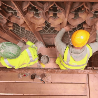 A decision was also taken, despite the challenges posed, to incorporate learning opportunities into the project and showcase conservation work and traditional building skills in action.