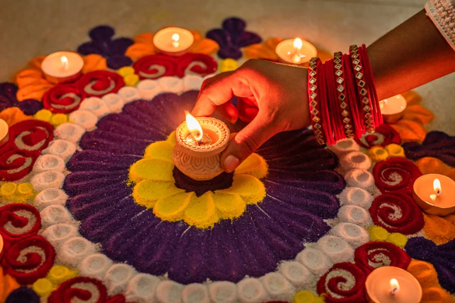 Image shows a person holding a candle celebrating Diwali 24 October - Diwali Festival of Lights - Image Gallery - (1587657)