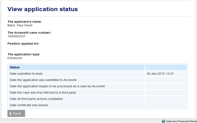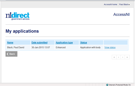 When your application is submitted you can track progress by selecting ‘View status’ on the ‘My applications’ screen.
