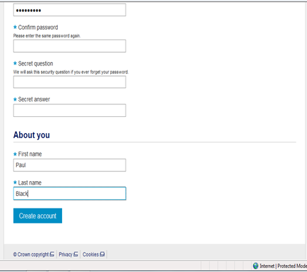 You will be asked to register your email address, password, secret question and to confirm your name.