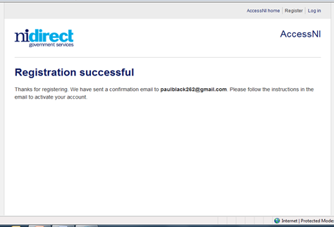 After you select ‘Create account’ you will be directed to a registration successful screen: