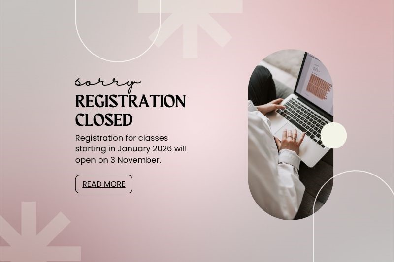 We will open registration for classes starting in January 2026 on 1 DECEMBER. Early registration is advised as classes fill up quickly. You will be able to register online from our website. Schedule information will be available shortly.