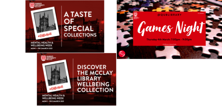The Library is excited to let you know that this year we are taking part in #QUBeWell University Mental Health Week from Monday 1st – Friday 5th March.