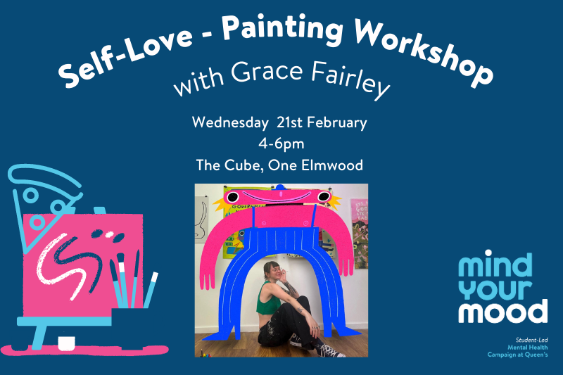 Join Mind Your Mood on Wednesday 22nd February from 16:00-18:00 for a painting workshop centred around the theme of self-love, delivered by artist Grace Fairley.