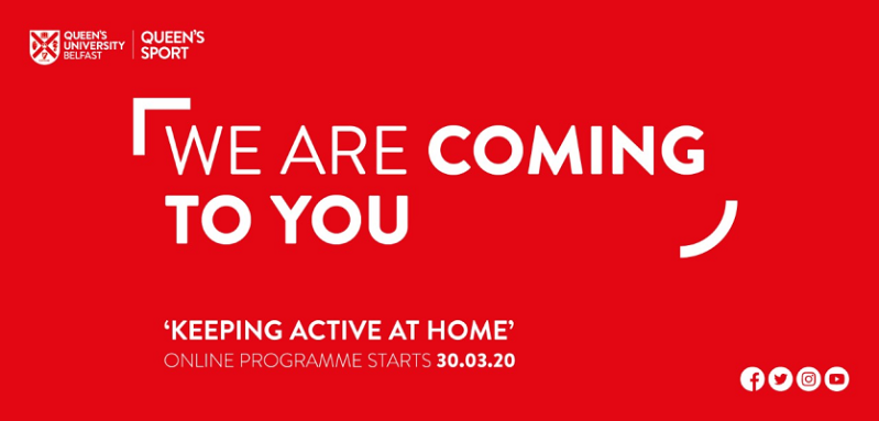 From Monday 30 March you will be able to connect with Queen's Sport via their social media channels and engage in a varied programme of workouts, fitness challenges, blogs and advice from your home or university accommodation.