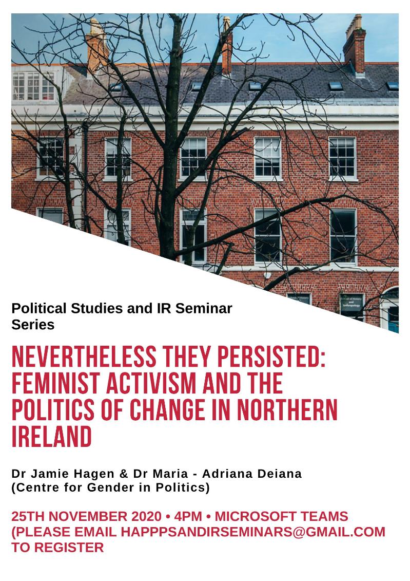Centre co-directors Dr. Maria Deiana and Dr. Jamie J. Hagen discussing their paper in progress, 'Nevertheless They Persisted: Feminist Activism and Politics of Change in Northern Ireland' as well as the work of the current end future work of the Centre.