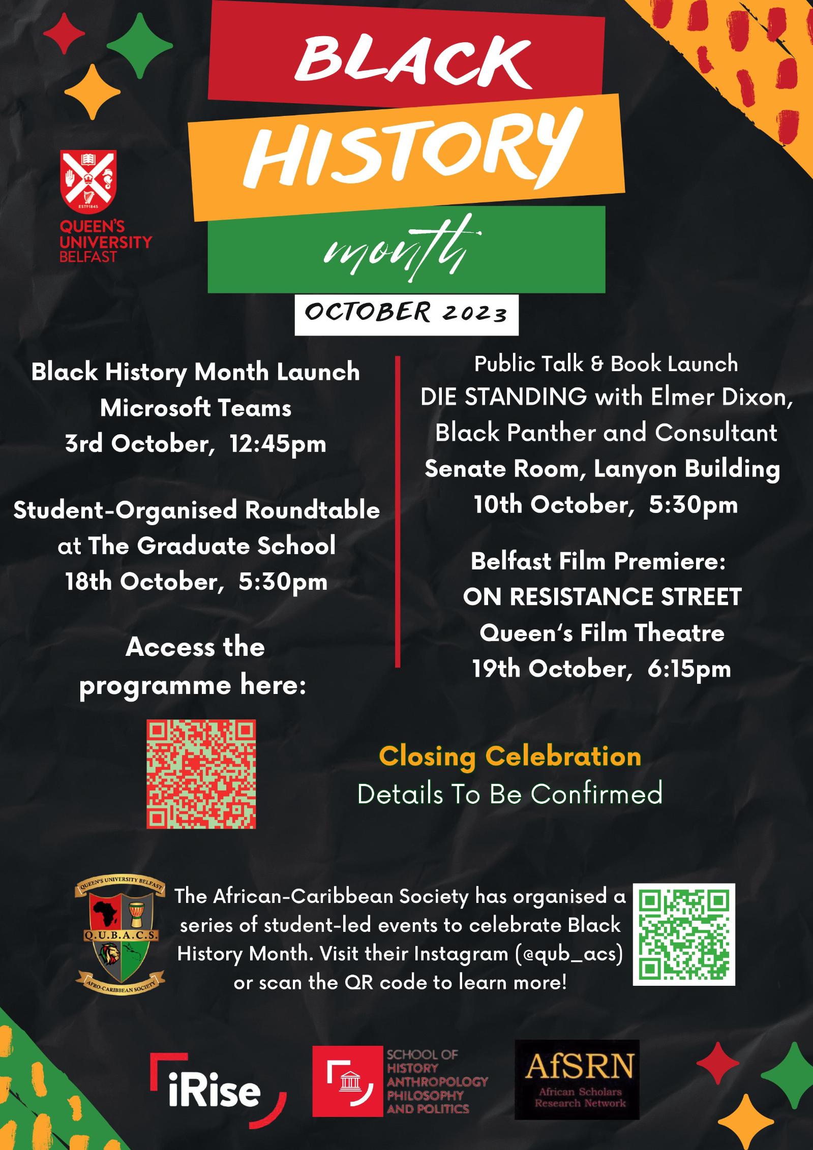 The Queen's University Belfast African-Caribbean Society has organised a series of student-led events to celebrate Black History Month.