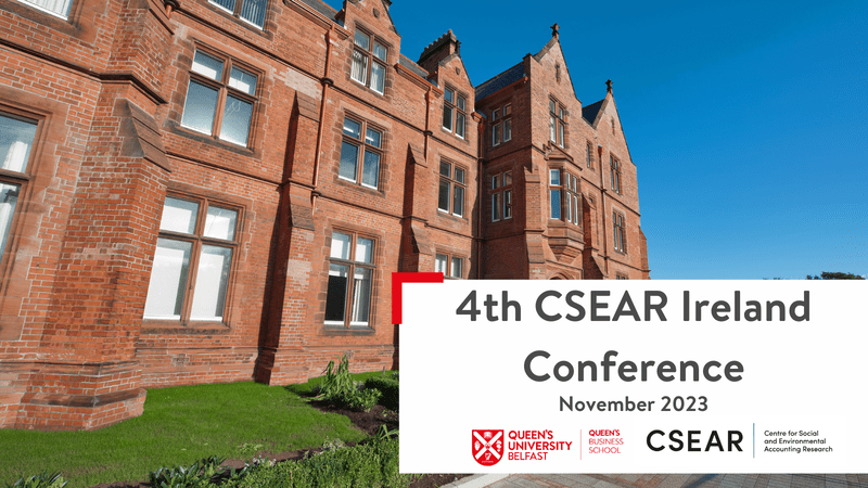 The fourth CSEAR Ireland conference will be hosted in November 2023 at Queen’s Business School, on the theme of: 'The Role of Sustainability Accounting, Accountability and Governance in Transitioning Towards the Sustainable Development Goals'.