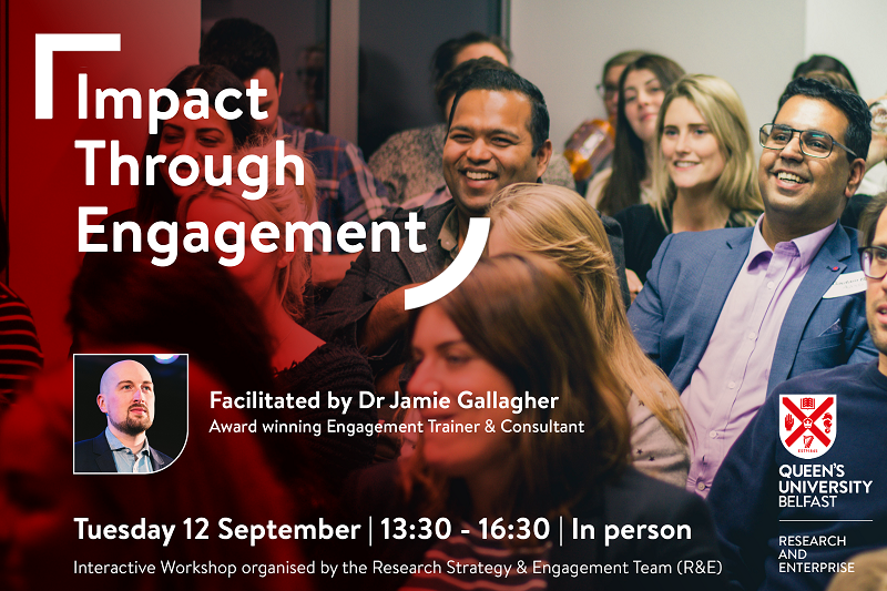 The Research Strategy & Engagement team in the Research & Enterprise Directorate are delighted to host this interactive workshop for researchers which will be facilitated by engagement consultant, Dr Jamie Gallagher, an award-winning freelance communicator, and engagement professional with ten years’ experience in the delivery and evaluation of quality engagement projects. This workshop will be held in person on Tuesday 12 September 2023 from 1.30 pm – 4.30 pm. It has been designed to enable participants to discover how to create engagement activities that lead to long-lasting and meaningful impact. Participants will explore the research impact landscape discovering how to create changes and benefits beyond the academic. From planning engagement projects, to working with communities, this session will show attendees how to create high quality projects tailored to their subject and skills. Whether your research team is new to engagement or aiming to find new perspectives on how to engage others with your research, this workshop provides helpful strategies for making the most of your engagement. See attached flyer for info.