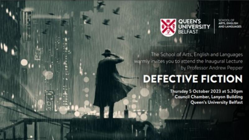The School of Arts, English and Languages warmly invites you to attend the Inaugural Lecture, Defective Fiction by Professor Andrew Pepper in the Council Chamber, Lanyon Building at 5.30pm on Thursday 5 October 2023