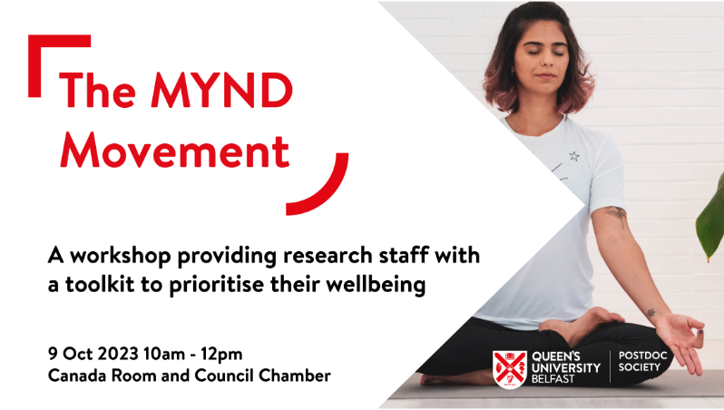 The Postdoc Society invites all Postdocs and Research Staff at Queen’s to The MYND Movement, a wellbeing workshop.