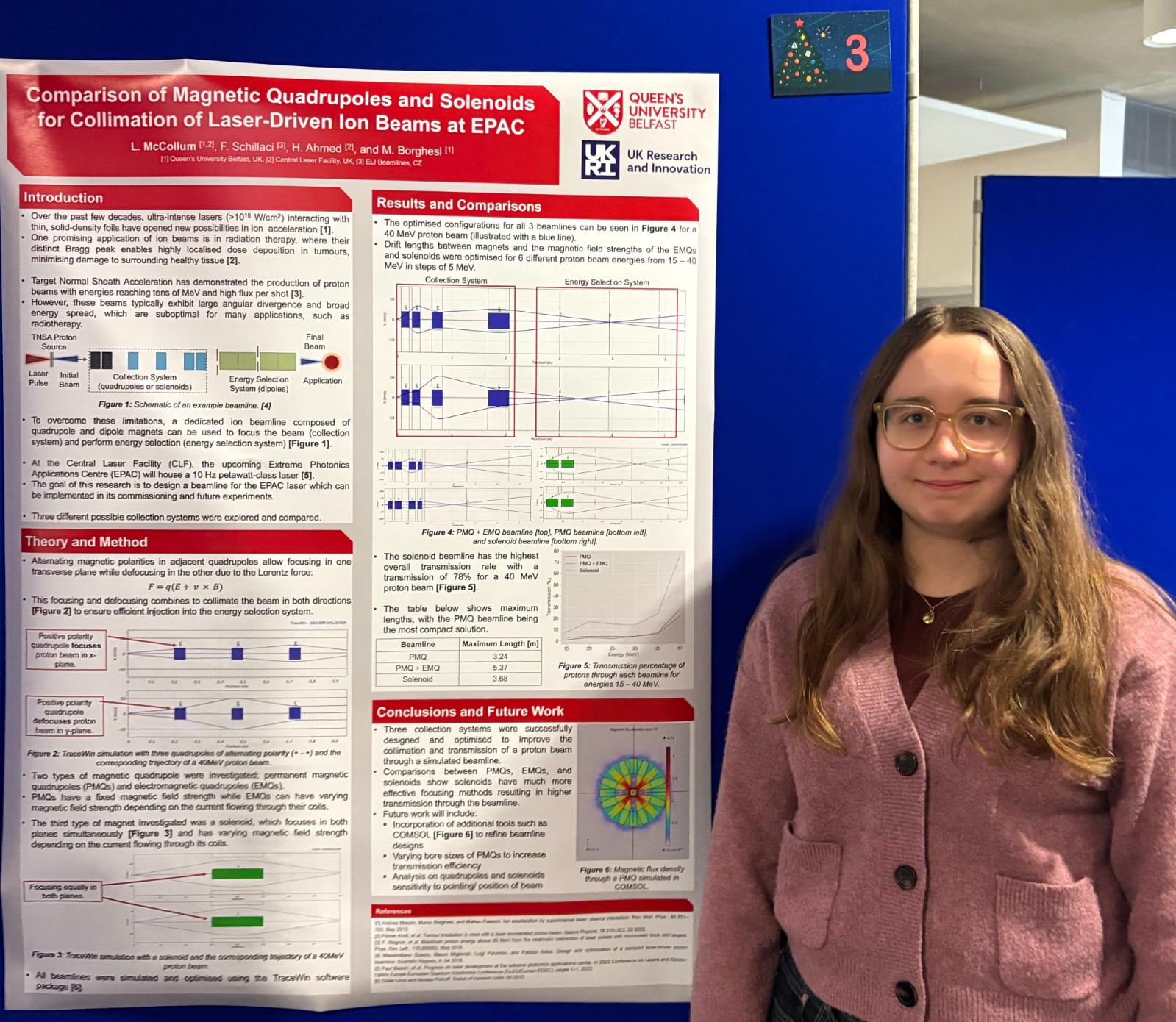 Developing compact ‘all-optical’ ion accelerators using high power lasers has attracted significant interest internationally due to their broad applicative potential in science, industry and healthcare. The CLF is currently building the Extreme Photonics Applications Centre (EPAC), which is aimed to provide a step-change in capability for laser-driven accelerator research in the UK as this facility will house a state-of-the-art 10 Hz Petawatt laser system. My research aims to exploit the high repetition rate capability of the EPAC laser system in developing a robust and reliable source of laser-driven ions. I am working on designing the EPAC ion beamline for potential radiobiology investigations, as well as, developing ion diagnostics capable of operation at a high repetition rate, which are crucial for the commissioning of the high-intensity target area in EPAC. My research involves a strong collaboration between the CLF and QUB and contributes towards keeping the UK at the forefront of the development of high repetition-rate novel laser-plasma accelerators.