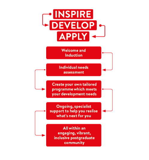 We will INSPIRE you through access to our thought leaders. You will DEVELOP your skills through an individually-tailored programme. You will APPLY these skills and knowledge through real world challenges.