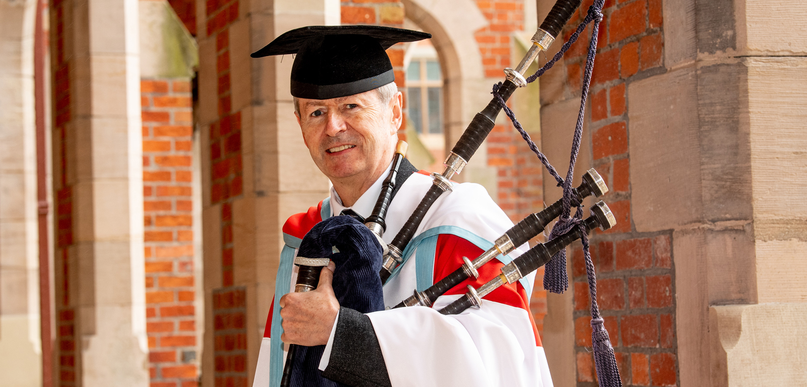 Pipe Major and veteran BBC NI Broadcaster honoured by Queen’s University Belfast