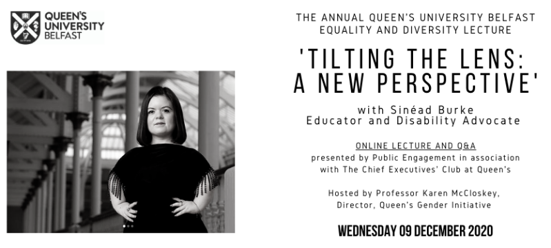The Annual Queen's University Belfast Equality and Diversity Lecture, entitled 'Tilting the Lens: A New Perspective' was given by Sinéad Burke.