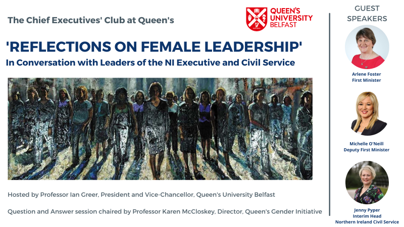 Click here to watch againClick here to watch again: Reflections on Female Leadership | 10 May 2021 : In Conversation with Leaders of the NI Executive & Civil Service, in association with the Chief Executives’ Club at Queen’s
