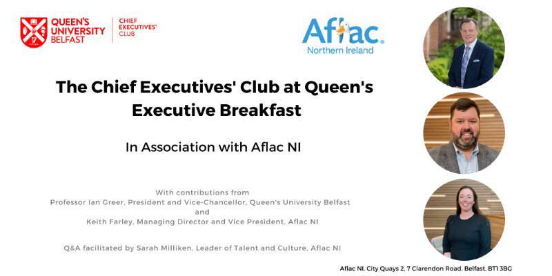 The Chief Executives’ Club at Queen’s was pleased to hold its first physical event in over a year, when member Keith Farley of Aflac Northern Ireland hosted an executive breakfast event.