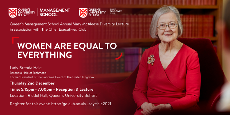 Mary McAleese Diversity Lecture 2020Mary McAleese Diversity Lecture 2020: Mary McAleese Diversity Lecture 2020 : The Queen's Management School 2020 Mary McAleese Diversity Lecture in association with The Chief Executives' Club was entitled 'The Future of Work and Women' and was given by Dr Anita Sands.
