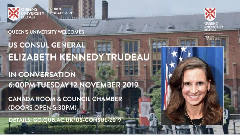 Queen’s Public Engagement is delighted to welcome the US Consul General Elizabeth Kennedy Trudeau to deliver a public talk at the University.