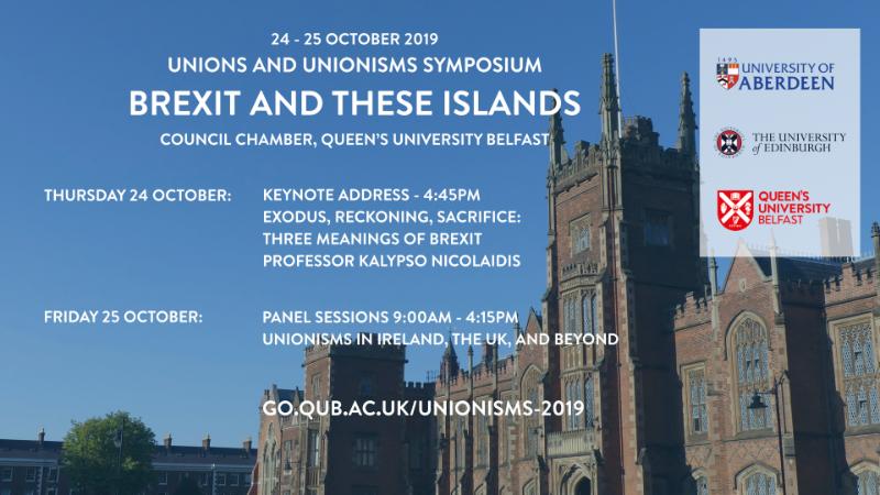 Queen's University Belfast, in partnership with the University of Aberdeen, the University of Edinburgh and the Centre on Constitutional Change, will host a symposium on 'Unions and Unionisms', Thursday 24 and Friday 25 October 2019.