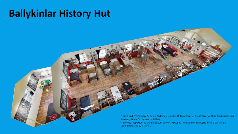 We invite you to take a virtual tour round the hut! Mr Anthony Anderson from the Centre for Data Digitation & Analysis, (CDDA) Queen’s University Belfast has created a Virtual Reality 4K Model of the hut. This model showcases the research, key interviews and designed comic strip that supports this rich resource and allows greater access and reach across the World.