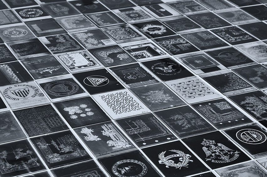 The William Liddell archive is a collection of over 1600 glass plates used in the Jacquard damask weaving of Irish Linen.