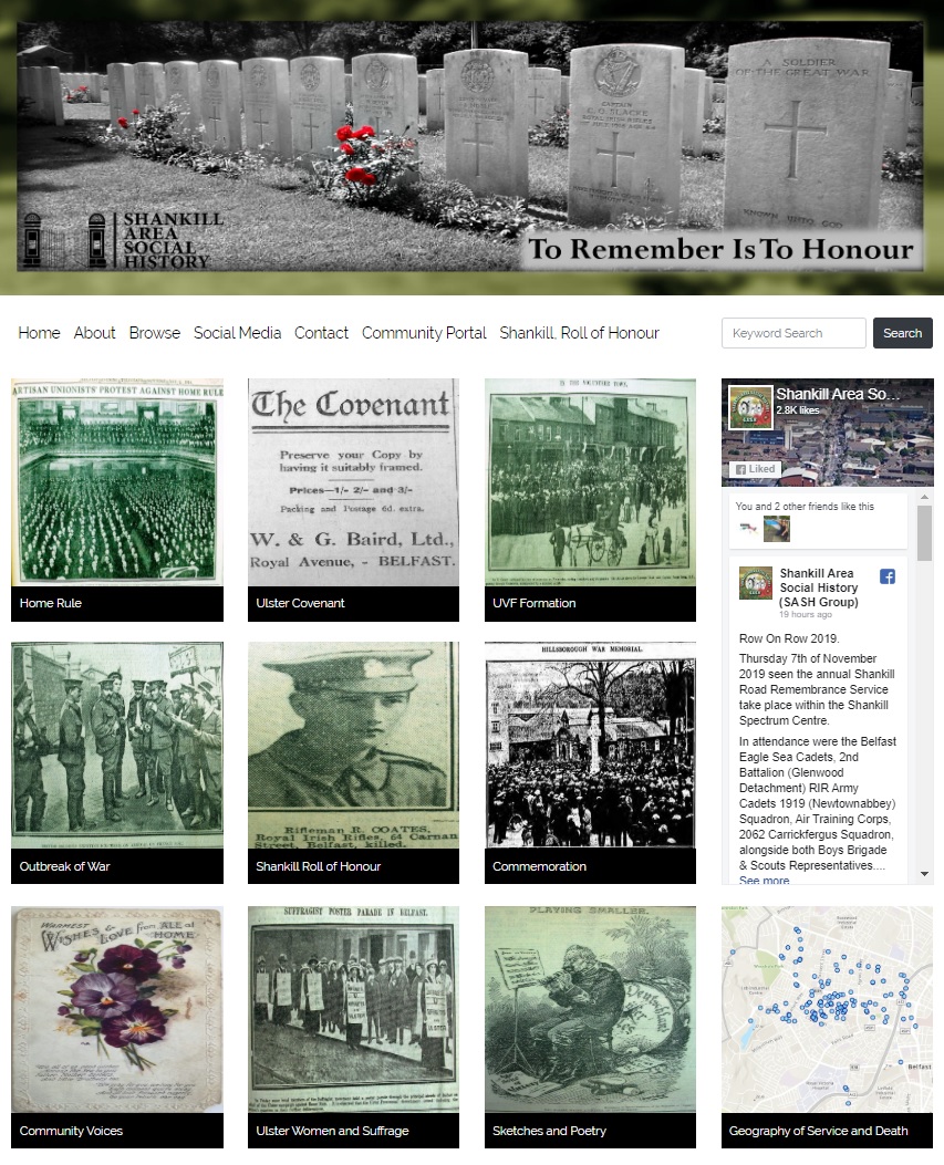 Funded by The Heritage Lottery Fund, supported by The Centre for Data Digitisation & Analysis and Living Legacies 1914-18 Engagement Centre, will work with the project archivist and identify key materials to enhance the digital interface and support, research and training for the group and wider audience. Some research themes include:- Home Rule, UVF Formation, Sketches and Poetry and Shankill Roll of Honour. Key aims include:- An interactive web site with crowdsourcing capabilities, upskilling through digital training and research workshops, and working with the research archive to enrich key themes. |