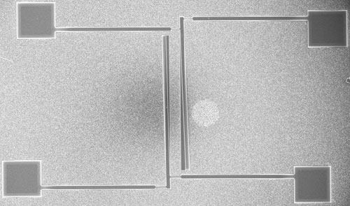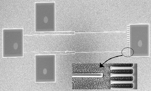 Cantilever beams are a commonly used MEMS structure. They consist of long thin free standing beams anchored at one or both ends. Microfabricated cantilever beams have many applications including mechanical sensors and actuators, chemical sensing and sensing, AFM probes, etc. One simple use of cantilever beams is to quantify the level of strain in a thin film. With knowledge of Young? Modulus for the film, stress values can be obtained. Examples of strain gauges fabricated at NISRC are illustrated in Figure 1. These are polysilicon thin films, deposited on a sacrificial oxide. Etching the underlying oxide releases the cantilever beams. At this point, the stress in the film causes the beams to deflect to the right or to the left. The deflection distance is proportional to the stress; stress-free beams should remain in their original position after release.