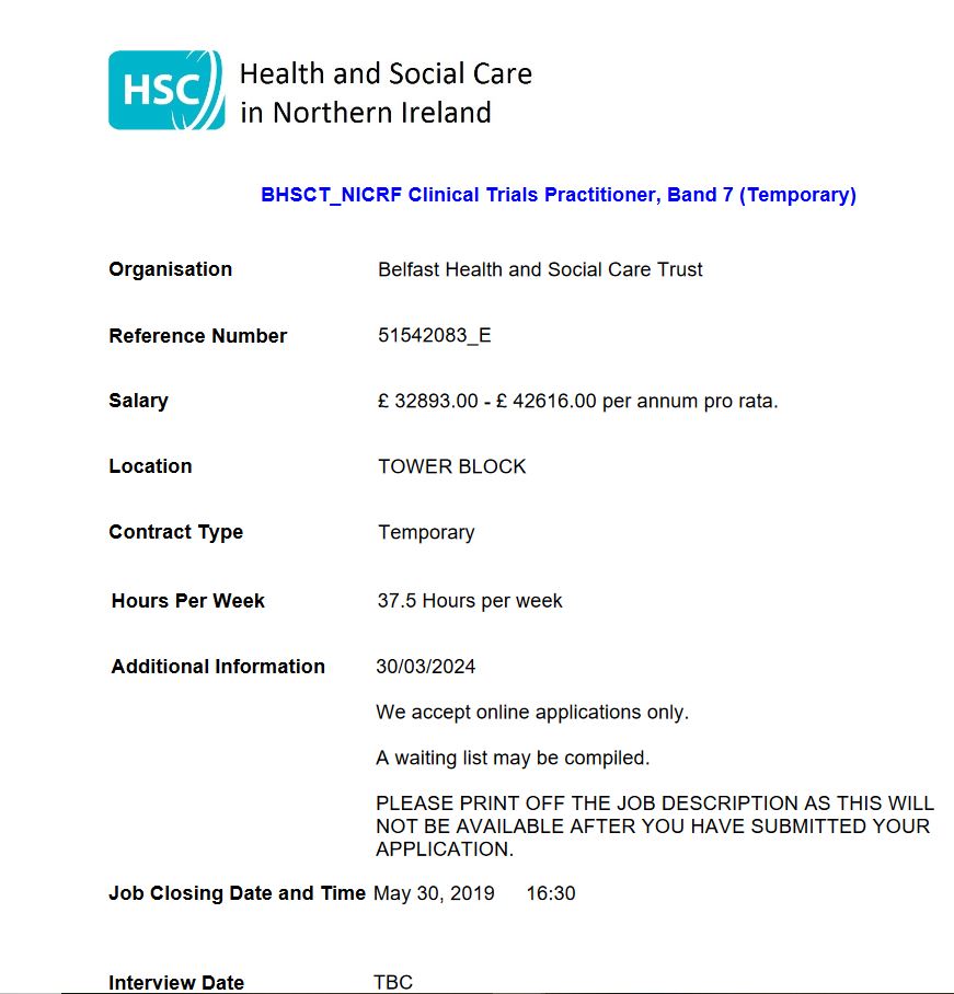 The Northern Ireland Clinical Research Facility is recruiting to a Band 7 Clinical Trials Practitioner.