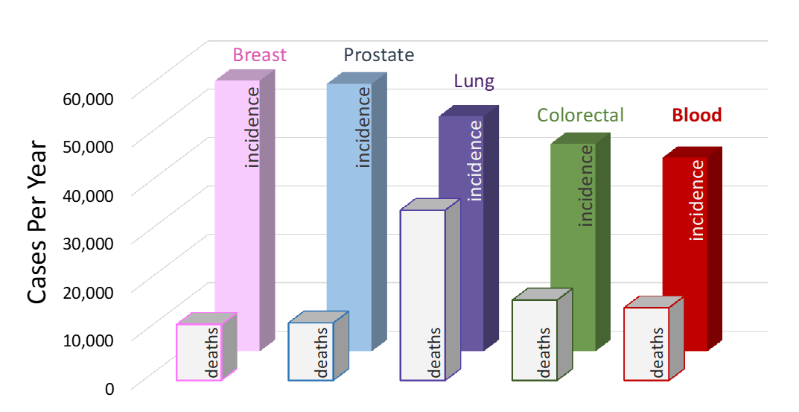 Collectively, Blood Cancers are the 5th most common cancer type in the UK, affecting more than 40,000 people each year and they are the third highest cause of cancer deaths.
