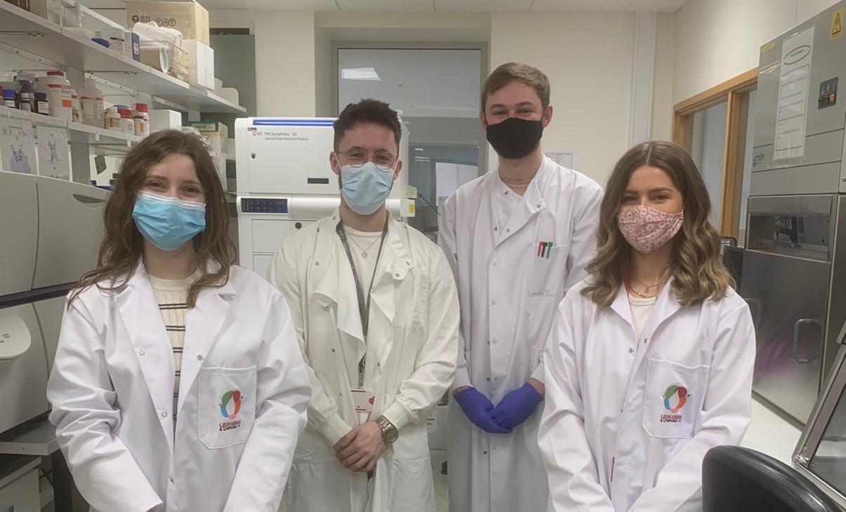 Bryony Kennedy is a PhD student in Dr Lisa Crawford’s lab, and her project is co-supervised by Dr Rich Williams, she is in her 2nd year and works on myeloma, focusing on developing treatments with higher efficacy. Aine McGill, also in 2nd year, works under the supervision of Prof. Ken Mills, Prof. Kevin Prise and Dr. Lauren Cairns, and her project aims to develop kinder treatments for pediatric AML, to avoid or circumvent the serious side effects associated with therapy.