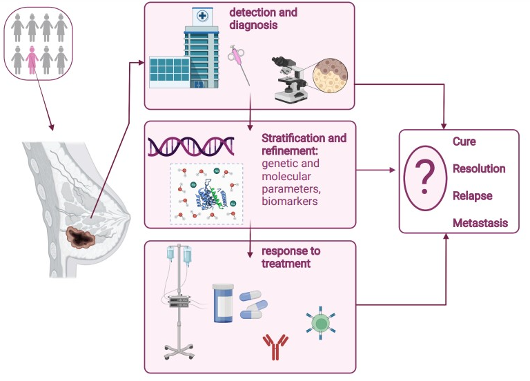 One in eight women will develop breast cancer in their lifetime. Research developed by multiple groups within the JCRC contributes to refinements towards early detection, as well as molecular and genetic stratification of multiple subtypes and patients to determine the best treatment plan towards the best possible outcome, and to allow identifying which patients are at higher risk for relapse or secondary breast cancer.
