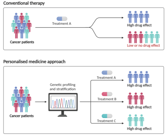 Through collaborations between QUB clinicians and scientists, our research is using new understanding developed in research laboratories, to identify the biology underlying an individual patient’s tumour and informing treatment decisions being made in the clinic; the “bench-to-bedside” approach. Our QUB research teams work with tumour samples that are removed during surgery, and work in our labs combines features from the tumour’s visual appearance down the microscope with information about changes in the genetic make-up of the person’s tumour. This approach is of particular relevance in recent years, as clinicians look to use molecular analysis to better understand the disease, which in turn enables the selection of the most appropriate drug for that patient’s individual tumour. The ultimate aim of this work is to allow patients to receive a more tailored disease management plan based on the specific properties and behaviour of their tumour. Thus, we can tailor treatment to the individual patient, maximising its effectiveness while minimising potential side effects.