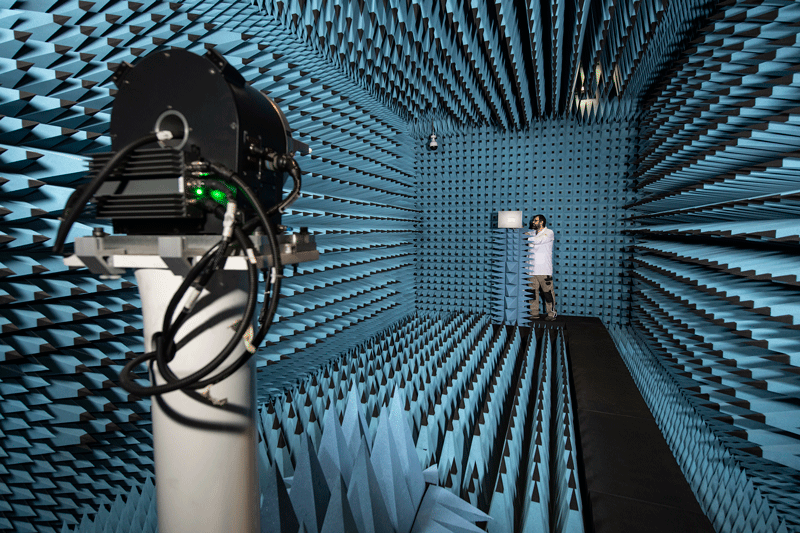 Our 10m x 5m x 5m anechoic chamber offers a range of operation from 433 MHz to 50 GHz.