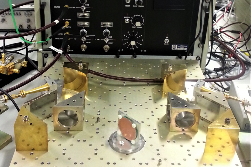Our AB millimetre MVNA-8-350 vector network analyser works from 100-700 GHz in conjunction with a purpose built quasi-optical test bench.