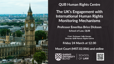 The Human Rights Centre at Queen's hosts a range of events, seminars and conferences throughout the academic year. Selected images from those appear below.