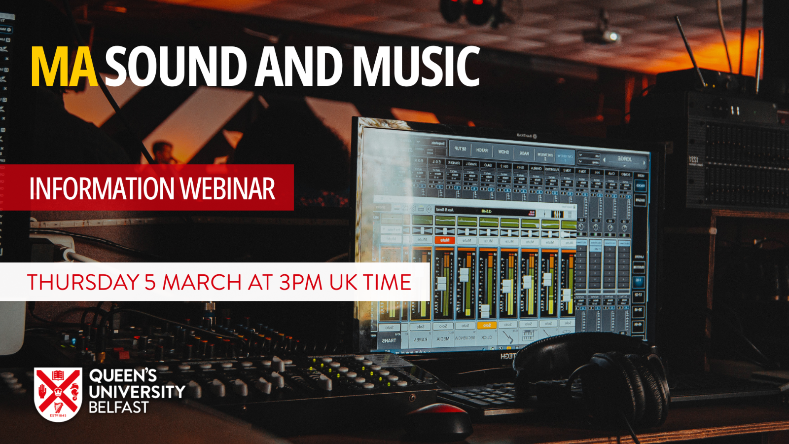 Want to learn more about the MA Sound and Music programme at Queen's? Join Dr Miguel Ortiz for our upcoming webinar on 5 March 2026 at 3pm. Register now: https://www.qub.ac.uk/Study/AHSS/webinar/sound/ Share